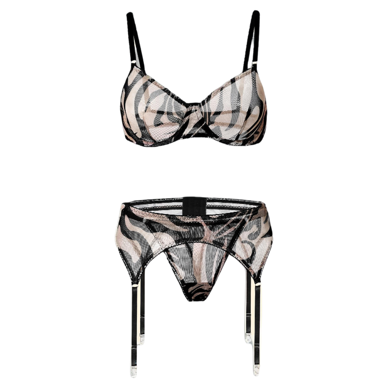 Evoke the enigmatic romance of Parisian midnight with this elegantly provocative lingerie set. Crafted with luxurious lace and lightweight mesh, the design plays with subtle restraint motifs—hinting at whispered secrets behind closed doors. Delicate embroidery traces the lines of the body like moonlight through wrought-iron balconies, while soft adjustable straps offer a nod to elegant confinement. Designed for the modern muse who embraces mystery and sophistication, this set transforms intimacy into an art form. Explore the allure of shadow and light, where desire meets timeless elegance.